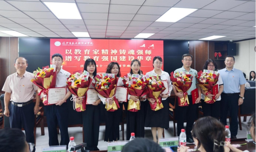 党委书记姜生伟、纪委书记张祥春分别为教师颁发荣誉证书、赠送鲜花