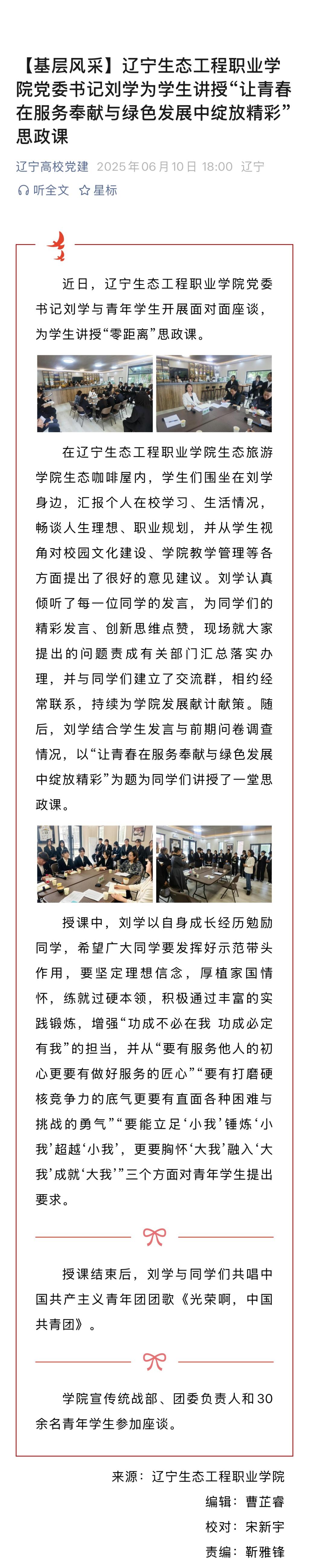 【辽宁高校党建】【基层风采】国产亚洲综合一区二区三区_亚洲欧美日韩中文天堂_尤物在线观看视频不卡无码_国产最新精品亚洲2025不卡_亚洲成Av人在线观看片水蜜桃党委书记刘学为学生讲授“让青春在服务奉献与绿色发展中绽放精彩”思政课-国产亚洲综合一区二区三区_亚洲欧美日韩中文天堂_尤物在线观看视频不卡无码_国产最新精品亚洲2025不卡_亚洲成Av人在线观看片水蜜桃